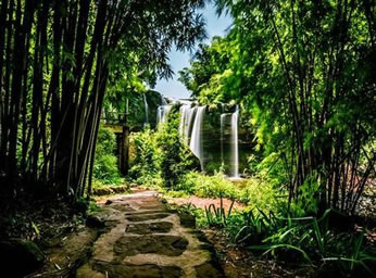 忘憂谷位于竹海旅游集散中心萬嶺小橋約一公里處,是蜀南竹海著名的景點。谷門用竹建成。溯幽谷小溪而上,蜿蜒蛇行,竹影叢叢。太陽透過竹葉的間隙,撒下點點亮光。清撤的溪水,一路跌宕,演變成五疊瀑,珍珠瀑等眾多瀑布后,歡快地奔出山谷。踩在靜靜的石板上,觀賞著輕盈的竹林,聆聽著溪水的清脆聲音,忘記生活的憂愁。