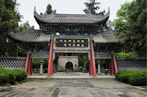 進(jìn)入博物館大門,建有一塊巍然矗立的唐碑,全稱:“蜀丞相諸葛武侯祠堂碑”,距今已達(dá)1100多年。由名相裴度撰寫碑文,名書家柳公綽書寫,名石匠魯建鐫刻,故世稱“三絕碑”。劉備殿有劉備塑像。東西兩廊,有蜀國文臣武將塑像,像前均立有石碑,記載事略。諸葛亮殿,塑有祖孫三代貼金泥塑像,諸葛亮居中,左側(cè)是其子諸葛瞻,右側(cè)是其孫諸葛尚。出諸葛亮殿,在一彎曲的夾道盡頭有劉備墓。