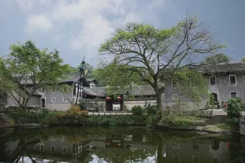 夕佳山民居,客廳門楣上掛著一塊“三鳳聯(lián)飛”的巨匾。據(jù)說,由于黃氏子弟在同一次科考中考取了三名秀才,當(dāng)時(shí)的知縣愛才,題贈(zèng)此匾以示祝賀和獎(jiǎng)掖。廳內(nèi),裝飾華麗、陳設(shè)古雅,廳外,樹影婆娑,芙蓉含笑,透露出主人高華清雅的情趣。