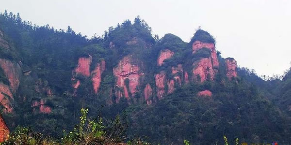 可久鎮(zhèn)紅巖山地處該鎮(zhèn)中寨村,位于高縣城西約15公里處,是平地聳起的神秘險(xiǎn)峻的山峰,它是以云風(fēng)寺為主體的幾十座小山峰成,山下有微波蕩漾的魚(yú)塘,是人們游玩休閑的好地方。在這紅紅的巖坡上,長(zhǎng)滿(mǎn)了茂密翠綠的樹(shù)林,山中有許多景點(diǎn),其中以“半邊寺”、“人頭石”、“馬公洞”、“大寺上”、“狗爬巖”、“蛤蟆石”、“鸚鴿石”、“南桷先知”、“南廣河域巖墓群”、“金水灣”等最為出名。