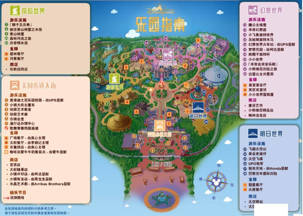 香港迪斯尼樂園位于大嶼山,環(huán)抱山巒,與南中國(guó)海遙遙相望,是一座融合了美國(guó)加州迪斯尼樂園及其他迪斯尼樂園特色于一體的主題公園。香港迪斯尼樂園包括四個(gè)主題區(qū):美國(guó)小鎮(zhèn)大街、探險(xiǎn)世界、幻想世界、明日世界。每個(gè)主題區(qū)都能給游客帶來無(wú)盡的奇妙體驗(yàn)。