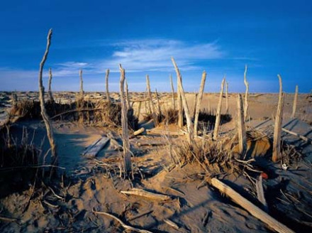 羅布泊干涸后,周?chē)鷳B(tài)環(huán)境發(fā)生巨變,草本植物全部枯死,防沙衛(wèi)士胡楊樹(shù)成片死亡,沙漠以每年3~5米的速度向羅布泊推進(jìn),很快和廣闊無(wú)垠的塔克拉瑪干沙漠融為一體。羅布泊從此成了寸草不生的地方,被稱作“死亡之海”。
