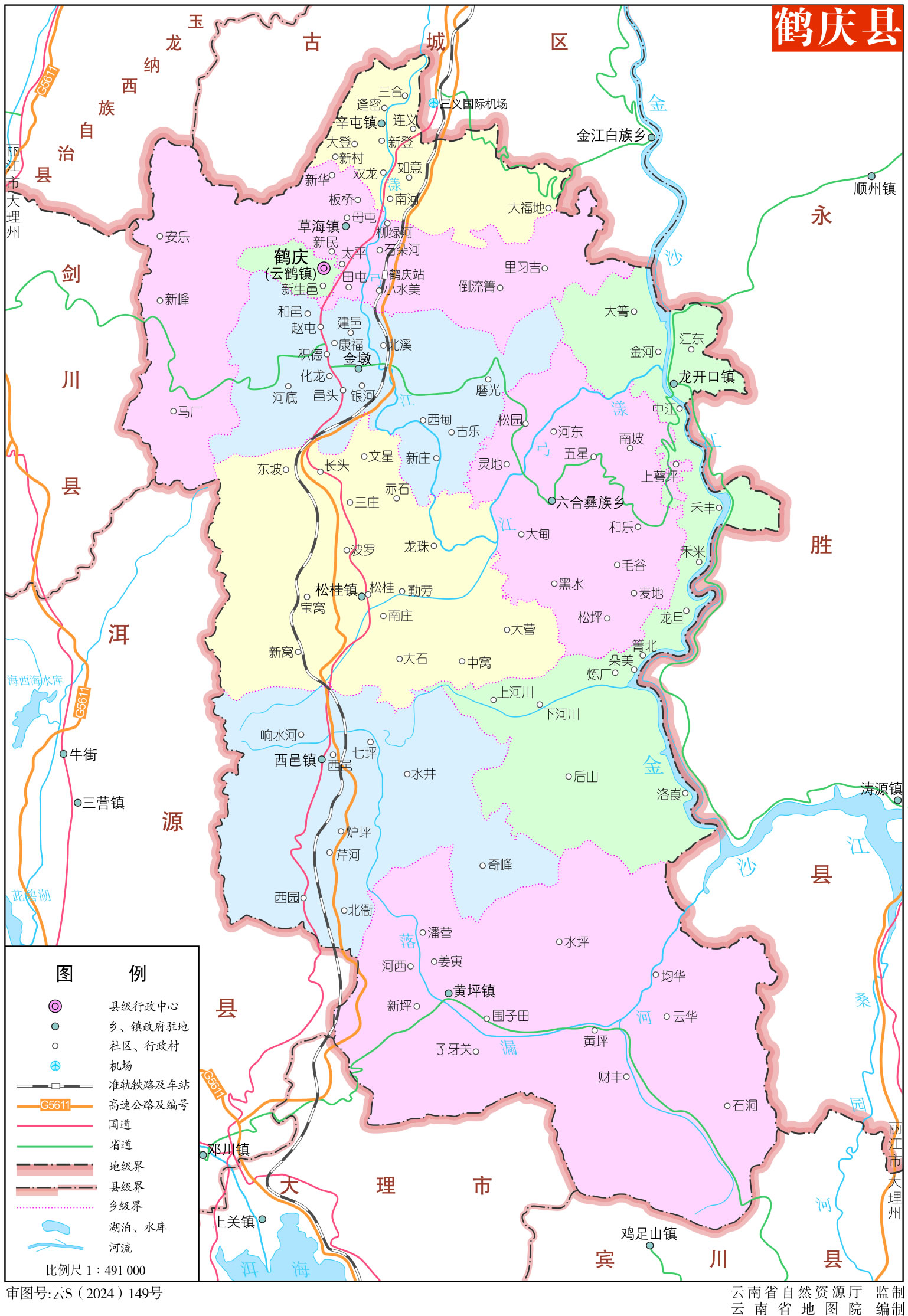 鶴慶縣轄7個(gè)鎮(zhèn)、2個(gè)鄉(xiāng):