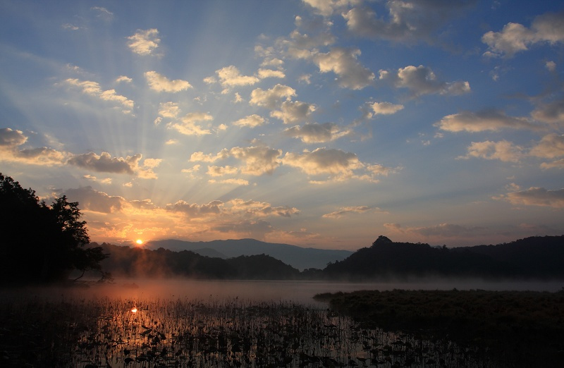 勐梭龍?zhí)稙樘烊坏,湖面海?170米,近似蘑菇狀,面積580畝,蓄水量500萬(wàn)立方米,最深37米,平均深度11.5米,年平均水溫23度。