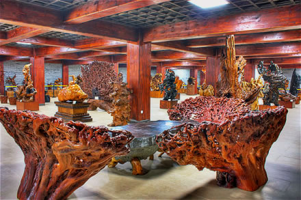為三棟唐式建筑,建筑面積14000平方,主要陳列道教文化儒家思想人物系列,民間神話傳奇系列,歷史風云人物系列,歷代中華帝王將相系列,以及開化歷史名人等大型根雕藝術作品1300余件,以奇根異木為載體,濃縮中華民族上下五千年歷史精華,是中華民族歷史文化寶庫中一筆珍貴財富、藝術瑰寶。