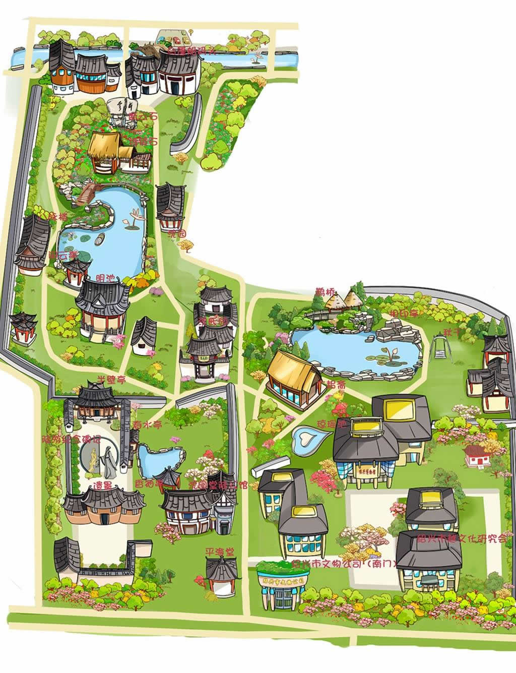 沈園主要由古跡區(qū)、東苑和南苑(陸游紀(jì)念館和連理園)三大部分組成,形成了“斷云悲歌”、“詩(shī)境愛(ài)意”、“春波驚鴻”、“殘壁遺恨”、“孤鶴哀鳴”、“碧荷映日”、“宮墻怨柳”、“踏雪問(wèn)梅”、“詩(shī)書飄香”和“鵲橋傳情”等十景。