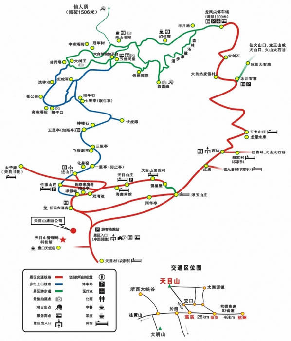 4、天目山景區(qū)內須換乘景區(qū)觀光車,上下山30元/人,步行上山的游客,下山也可在龍鳳尖停車場換乘觀光車下山,15元/人。