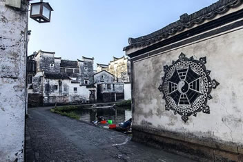 以鐘池為中心,有八條小巷向四面八方延伸,直通村外八座高高的土崗,其平面酷似八卦圖。小巷又派生出許許多多橫向環(huán)連的窄弄堂,弄堂之間千門(mén)萬(wàn)戶,星羅棋布著許多古老縱橫的民居。接近鐘池的小巷較為筆直,往外延伸時(shí)漸趨曲折,而許多小巷縱橫相連,似通非通,猶如迷宮一般。外人進(jìn)入小巷,往往好進(jìn)難出,甚至迷失方向。